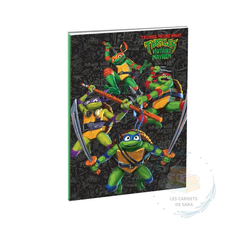 Carnet de 40 feuilles à l'esprit des légendaires tortues combattantes, couverture à l'image des 4 ninjas intrépides.